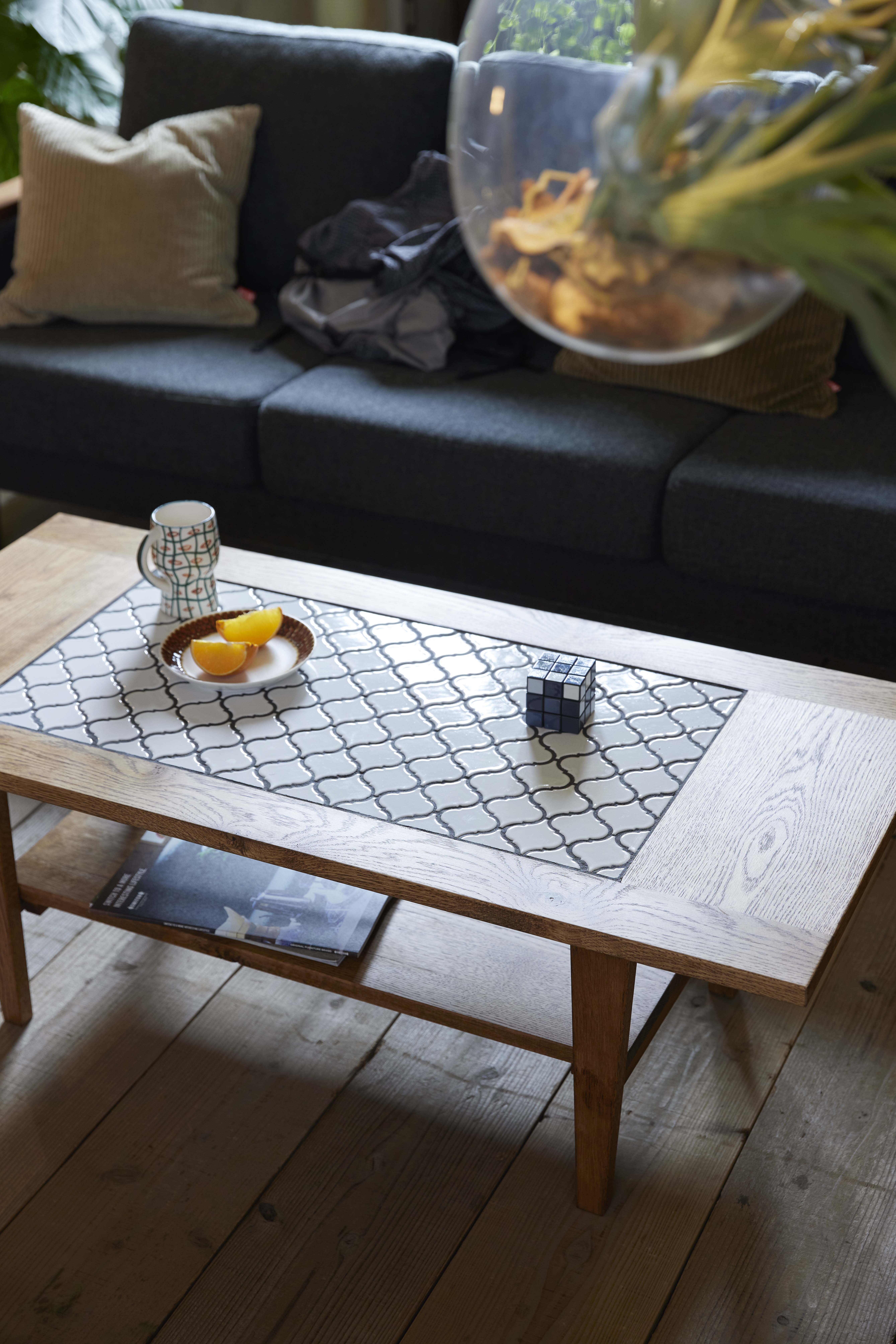 こちらの棚は、Tile Living TableおよびMajolica Living Tableに取り付けて使用できる棚です。テーブル下の空間を有効活用し、リビングでの使いやすさを高める実用的な収納アイテムとして設計されています。